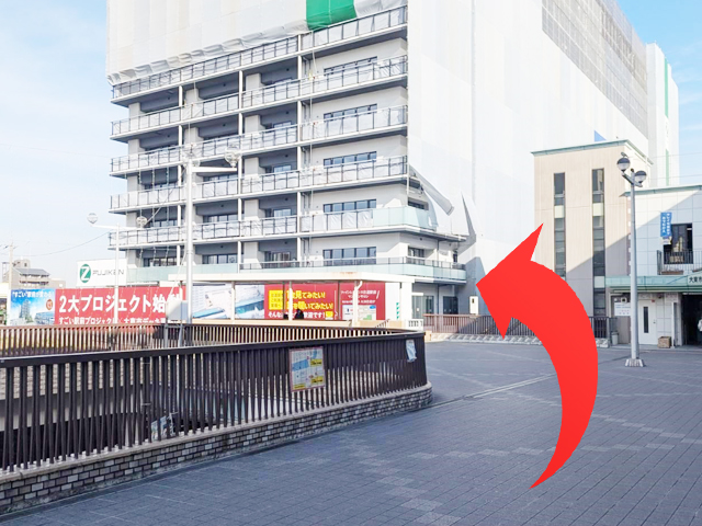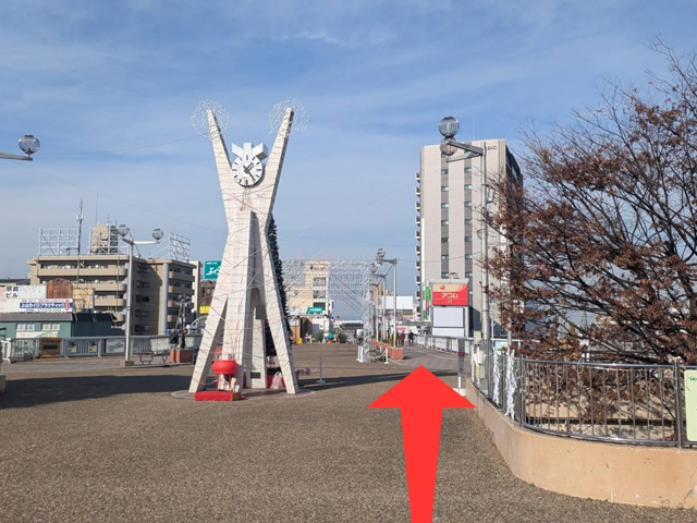 03 正面に時計台があり、右手の大きなマンションの方向へ