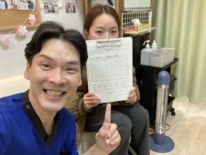 施術に関しても日によって痛みが違うのを細かく対応を変えてくれたり、わからない事や原因等も説明もしてもらったりとわからない事をわかるようにわかりやすく説明しながら施術してもらいました。