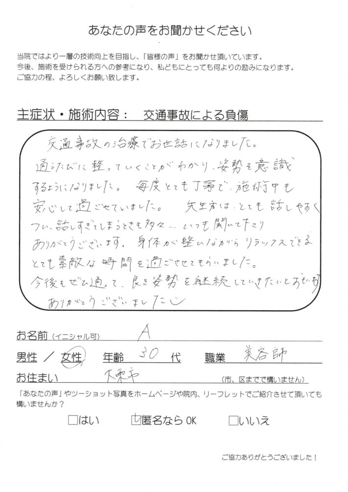 えむ様 30代 大東市 交通事故による負傷